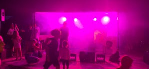 Grund dafür waren Freunde, die uns fragten, ob sie sich nicht mal unsere Lautsprecher und Lichter, die wir wegen unserer Band besaßen, für ihren Geburtstag ausleihen können. Natürlich, die Technik steht bei uns daheim rum. Gleichzeitig war David mit „Dunnäkeil“ auf ihrer Kindergartentour als Techniker unterwegs.